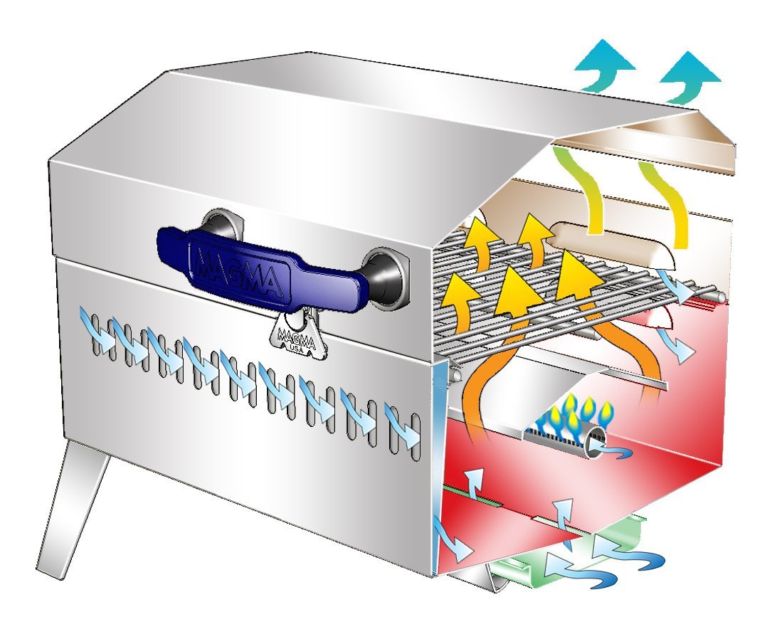 Designed for todayβs boater who doesnβt want to substitute quality for cost. The Cabo is made entirely of 100% 304 mirror polished marine grade stainless steel. Manufactured with the same quality youβve come to expect from all Magma Products, this gas grillβs features include a 9β x 18β (162 sq. in.) grilling surface, an oversized balanced lockable lid with draw tight latch, durable heat resistant all-weather handle with air cooled supports, fold-away table top legs, locking grease tray with access from either side of the grill, and a convenient snap-out radiant plate assembly for even heat distribution. Its fuel efficient swiveling control valve, attaches to, pre regulated, low pressure propane (LPG) fuel systems or can be adapted for use with 1lb. disposable propane fuel canisters or natural gas (CNG) fuel systems. Its compact design, light weight, and large selection of accessories to customize it to your desired application the Cabo truly is a go-anywhere grill to enhance all of your outdoor activities.Β Magma offers the largest section of mounting options (sold separately) to customize the grill for your needs, fuel canister and serving tray (not included).
