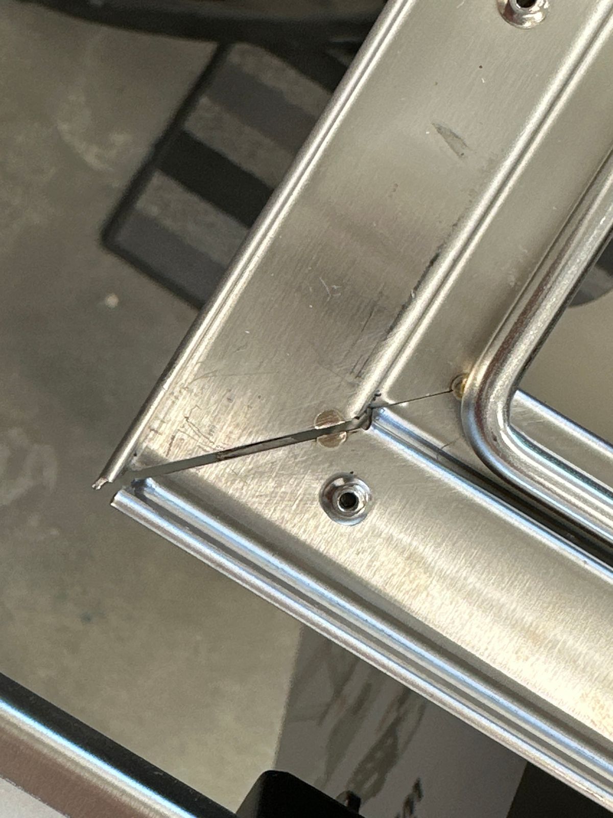 Initially I did not see any damage but when I opened the top covers one did not open as nice as the other. Upon closer inspection it was slightly bent and rubbing on the main housing. I straightened the bend and it corrected the rubbing issue. I then found the tiny spot welds in the corner of the firebox had separated