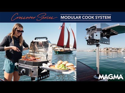 Build your perfect marine cooking experience with Magma's Crossover series portable, modular cook system. The Grill Top is made from marine grade, mirror polished stainless steel and cast aluminum base with an innovative diffuser plate for even heat across the entire cooking surface. This marine grill top cooks up the best burgers, chicken, steak, or whatever the captain can grill up while on board the boat.Β The cast aluminum base ensures a secure fit on the Firebox and won't distort over time and use.Β TheΒ diffuser plate funnels grease away from the burner into the Firebox grease containment system and helps maintain temperature and control smoke.Β The lid includes a thermometer and locks into place for easy transport.Β Requires the use of the Magma Crossover Single Firebox (sold separately).Β Β This new system, which transforms from stove to pizza oven, grill and griddle, earned the 2022 Miami Innovation Award from National Marine Manufacturers Association.
