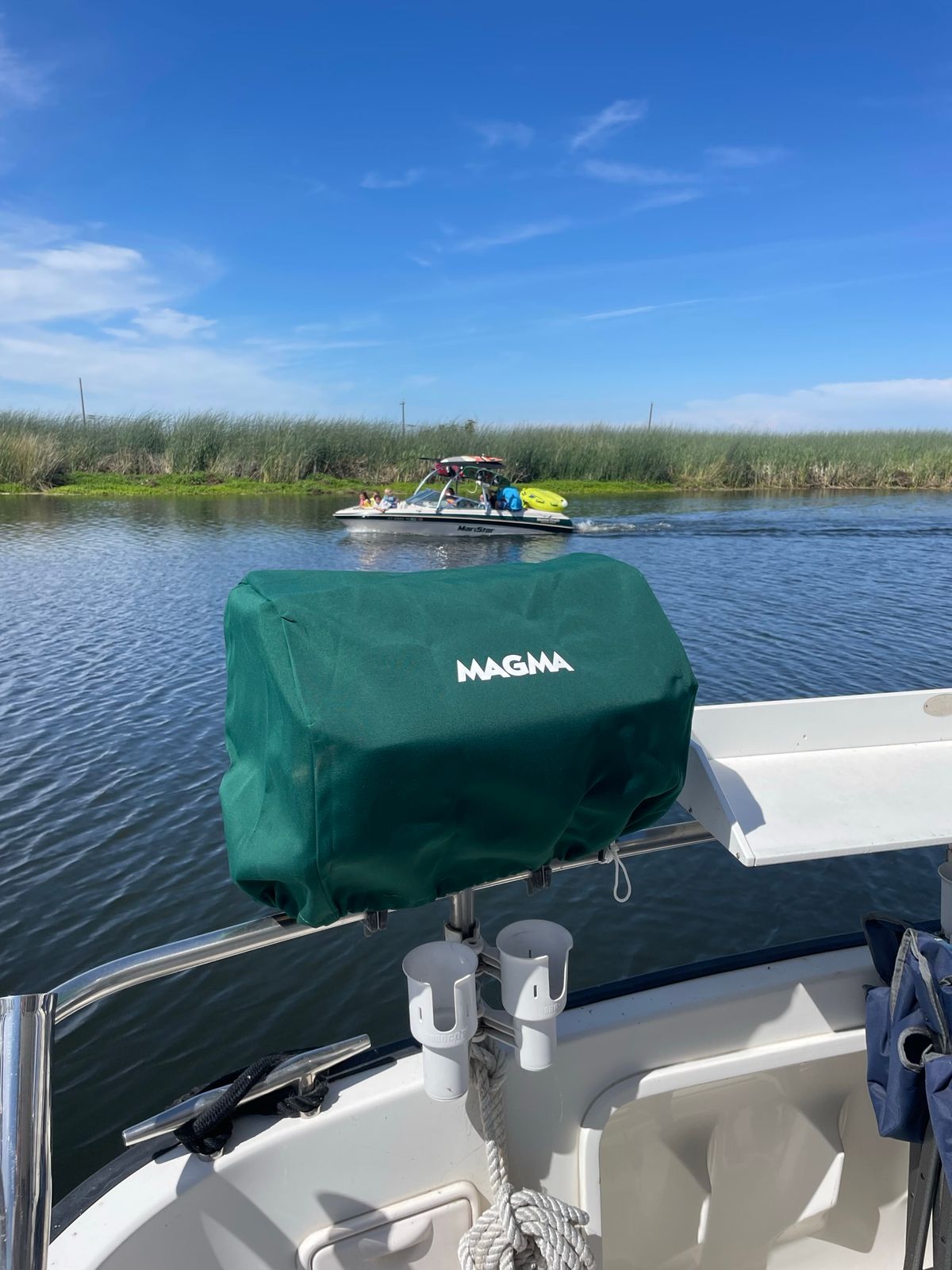 These grill covers are designed specifically to fit any Magma rectangular grill with a 12” X 18” grilling surface and are available in boating’s most popular colors. Constructed from breathable solution dyed acrylic fabric that is water and fade resistant. The material is guaranteed with a 5 year warranty that covers the fabric from becoming unserviceable because of loss of color or strength from normal exposure conditions, including sunlight, mildew, rot, and atmospheric chemicals. While the convenient draw string and cam lock assembly keep it secured while underway or in windy conditions.